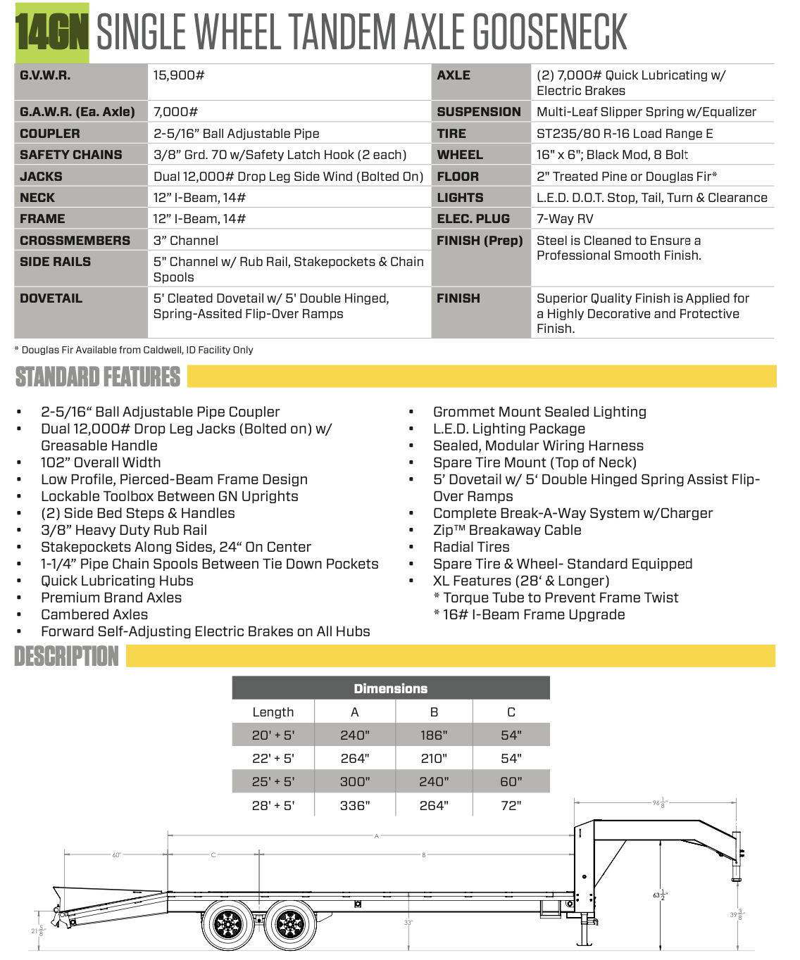 / 16GN Super Duty Single Wheel Tandem Axle Gooseneck